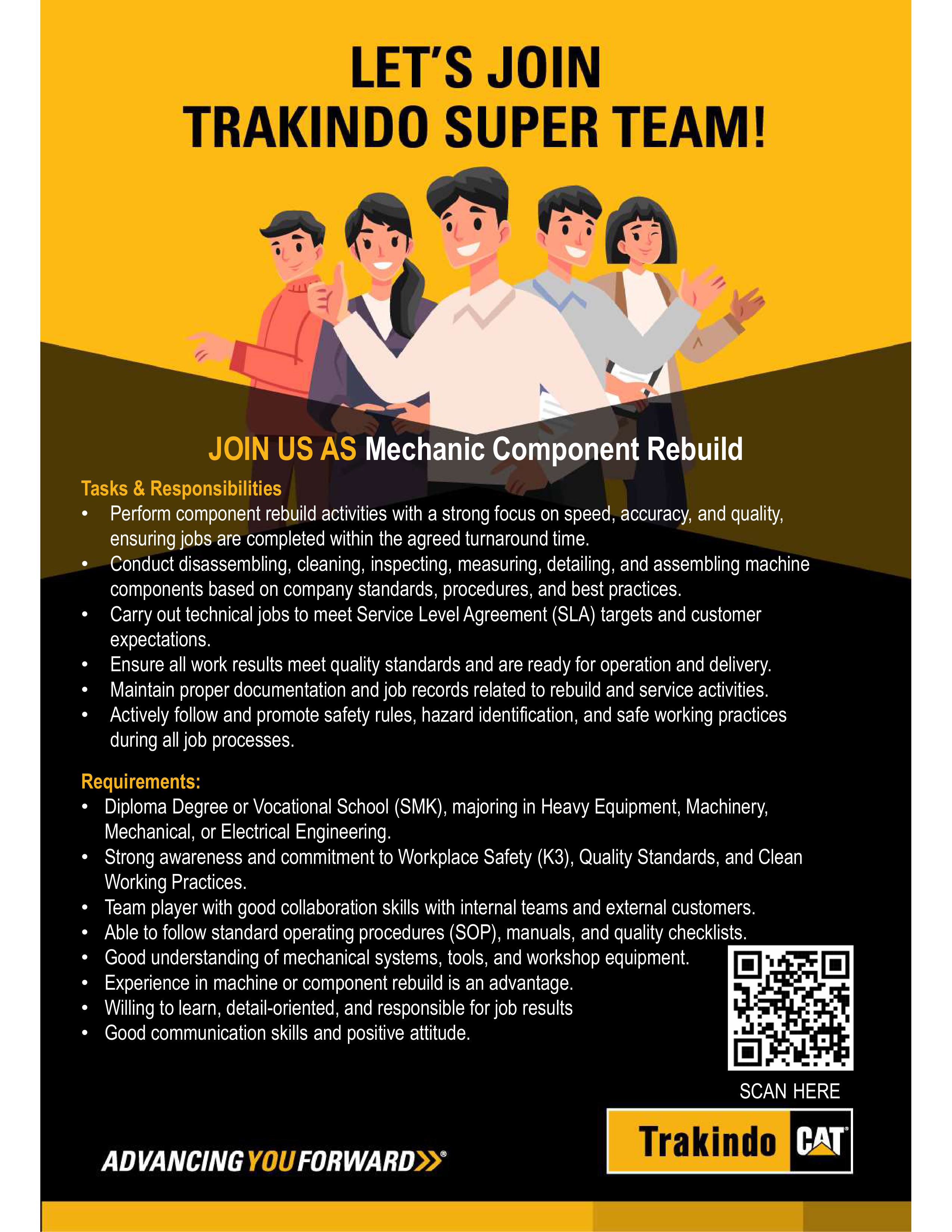 Diharapkan partisipasi para alumni Prodi Alat Berat dan Prodi Teknik Elektronika untuk hadir dan memanfaatkan kesempatan ini dalam menjajaki peluang karier bersama Trakindo.