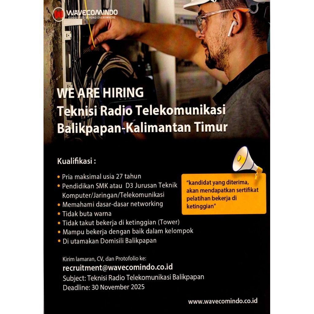 Email : recruitment@wavecomindo.co.id